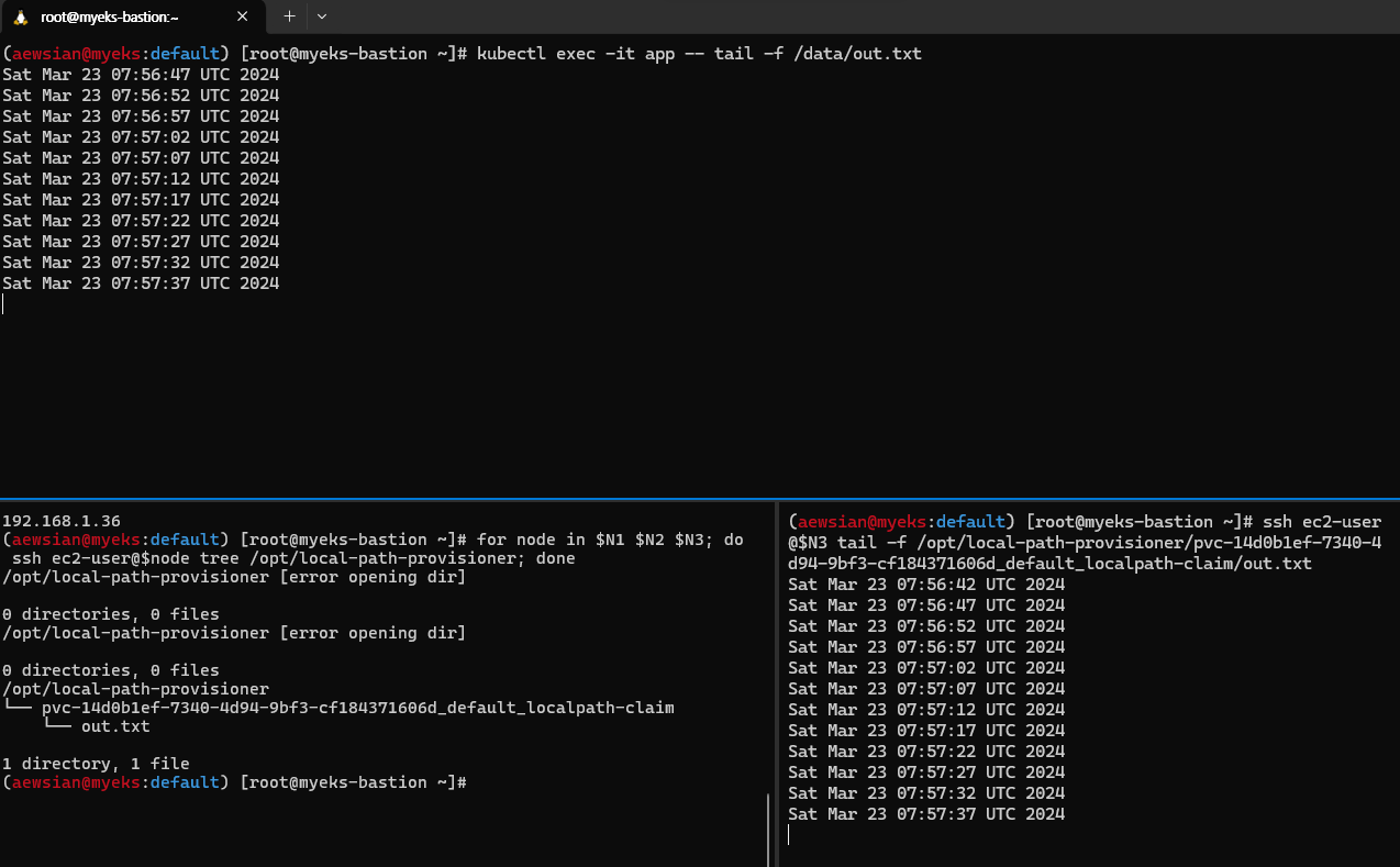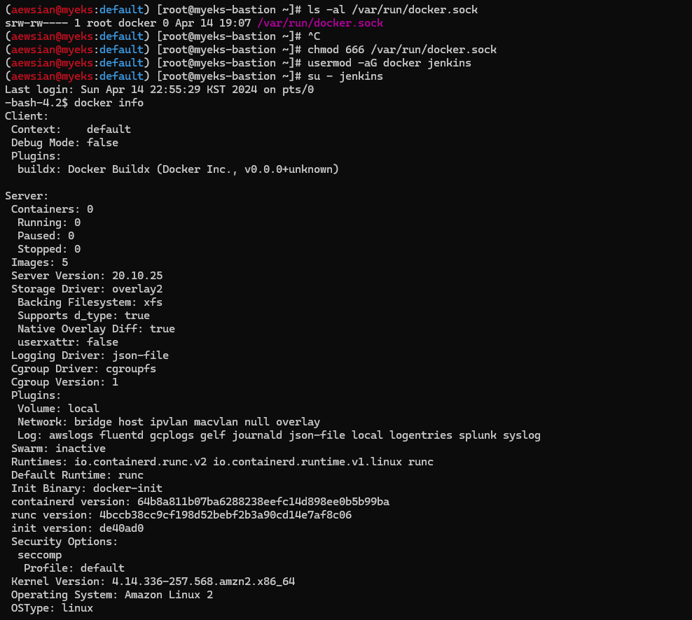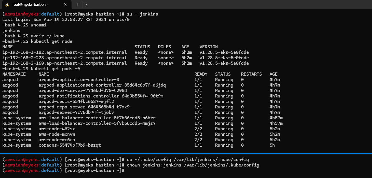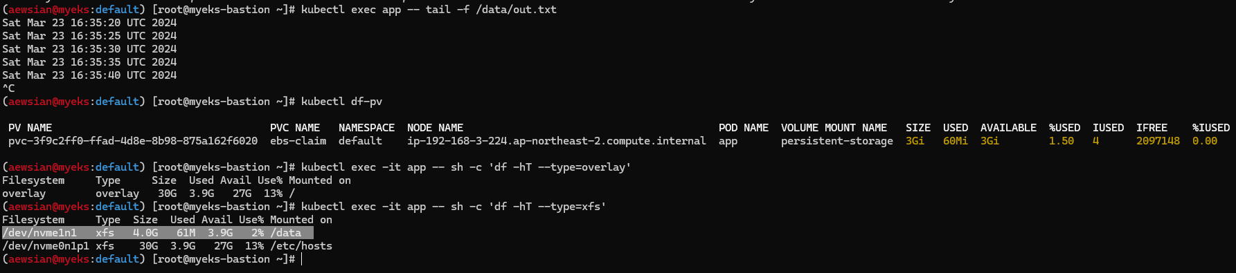 myeks myeks-nodegroup ACTIVE 2024-03-09T18:02:34Z 2 2 2 t3.medium AL2_x86_64 eks-myeks-nodegroup-eac71230-bb27-1b00-6c14-e2c96dfc5646 managed