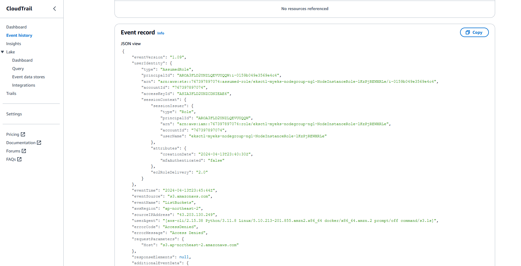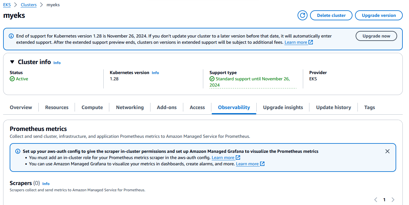 AWS 콘솔에서도 EKS가 배포된 내용을 확인할 수 있다 (혹 콘솔에서 갱신이 안되었다면 새로고침 버튼을 클릭해보자).