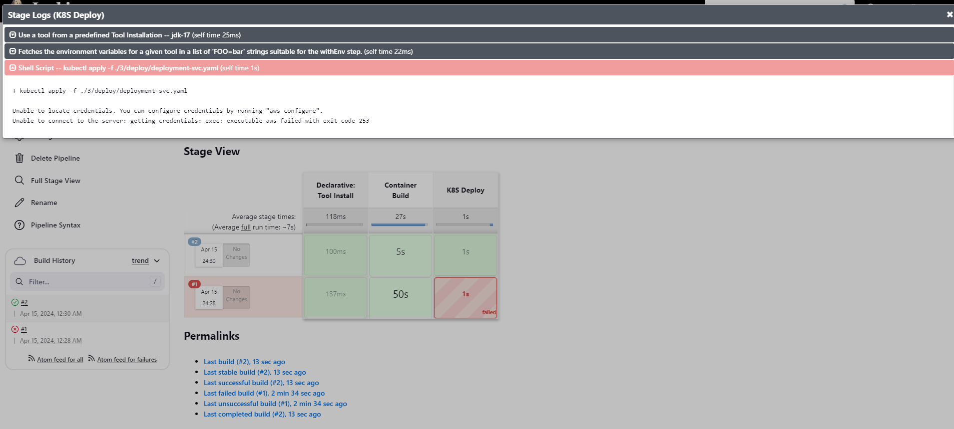 Unable to locate credentials. You can configure credentials by running "aws configure".