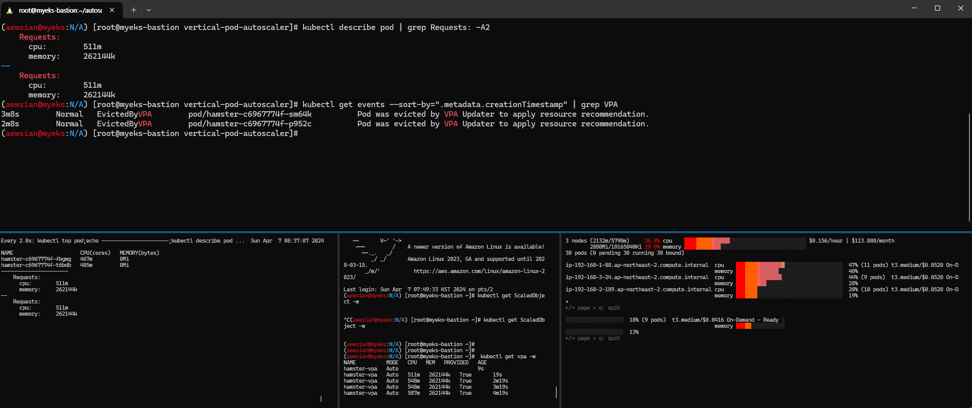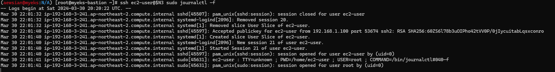 이를 "퍼블릭 및 프라이빗"으로 변경해보자. 변화 감지를 위해 총 3개의 터미널을 사용해보자. 2개 터미널은 모니터링 목적으로 사용한다.