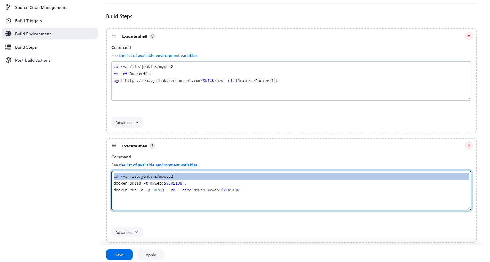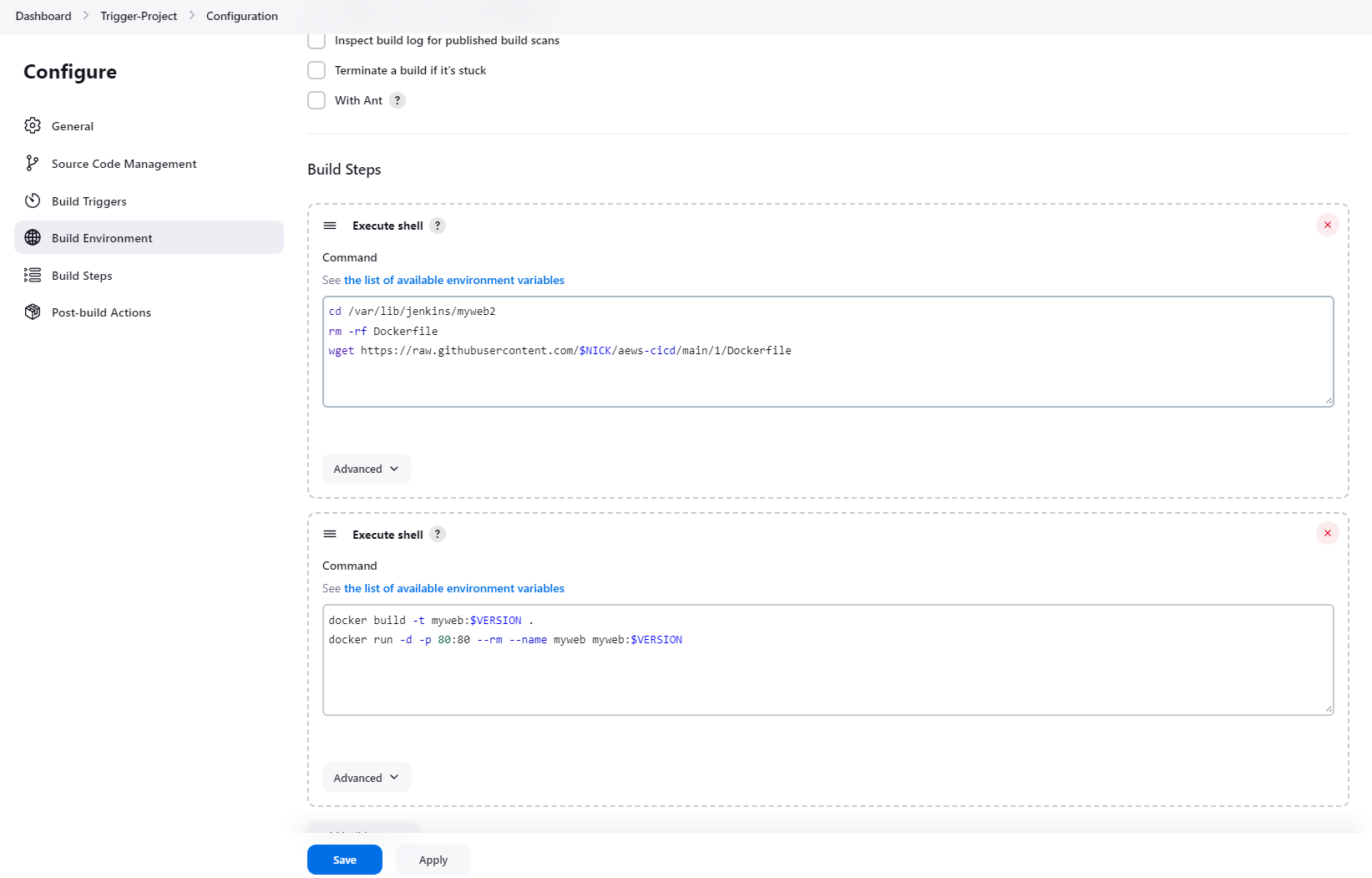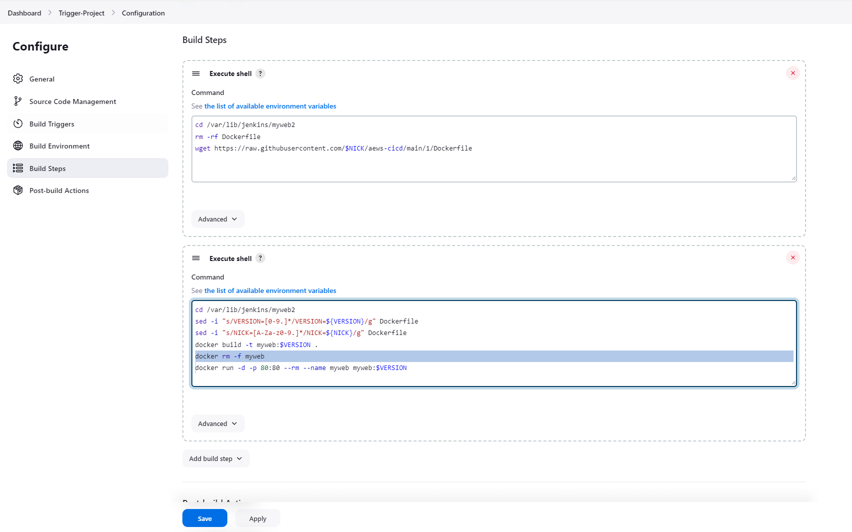 빌드하고자 하는 버전 태그를 로컬 환경 변수에 저장하고, 해당 버전에 대한 소스로 변경하기 위해 "git checkout" 커맨드를 사용한다. 여기서는 TAG라는 이름으로 환경 변수를 사용하여 값을 저장한 다음 $TAG 형태로 해당 값을 사용하여 해당 버전에 대한 소스를 체크아웃하였다.
