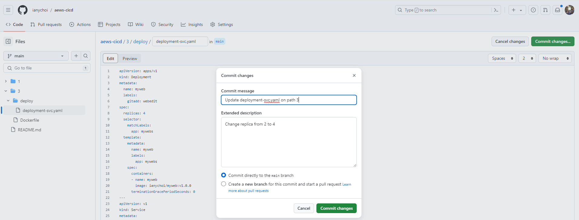 Replace <ecr image> with the location of your image in deployment-Service.yml
