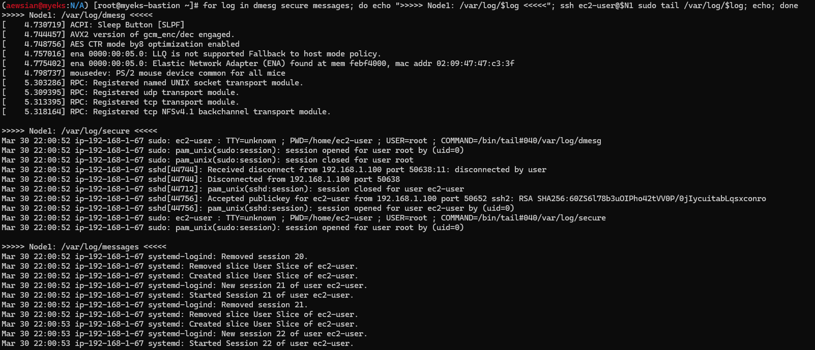 for i in $N1 $N2; do echo ">> node $i <<"; ssh ec2-user@$i sudo systemctl restart kubelet; echo; done