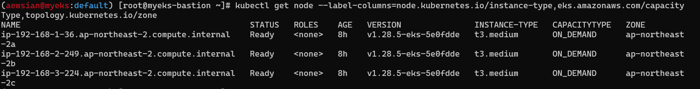 N1=$(kubectl get node --label-columns=topology.kubernetes.io/zone --selector=topology.kubernetes.io/zone=ap-northeast-2a -o jsonpath={.items[0].status.addresses[0].address})