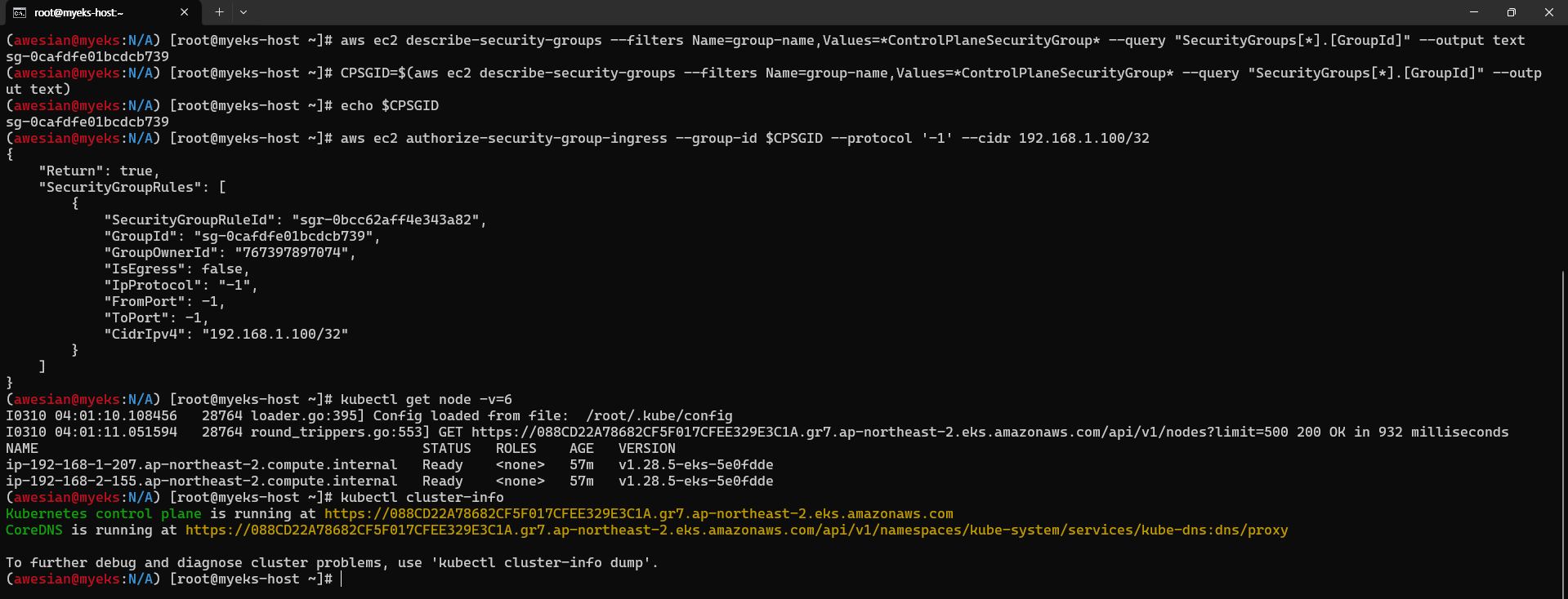 (awesian@myeks:N/A) [root@myeks-host ~]# kubectl get node -v=6