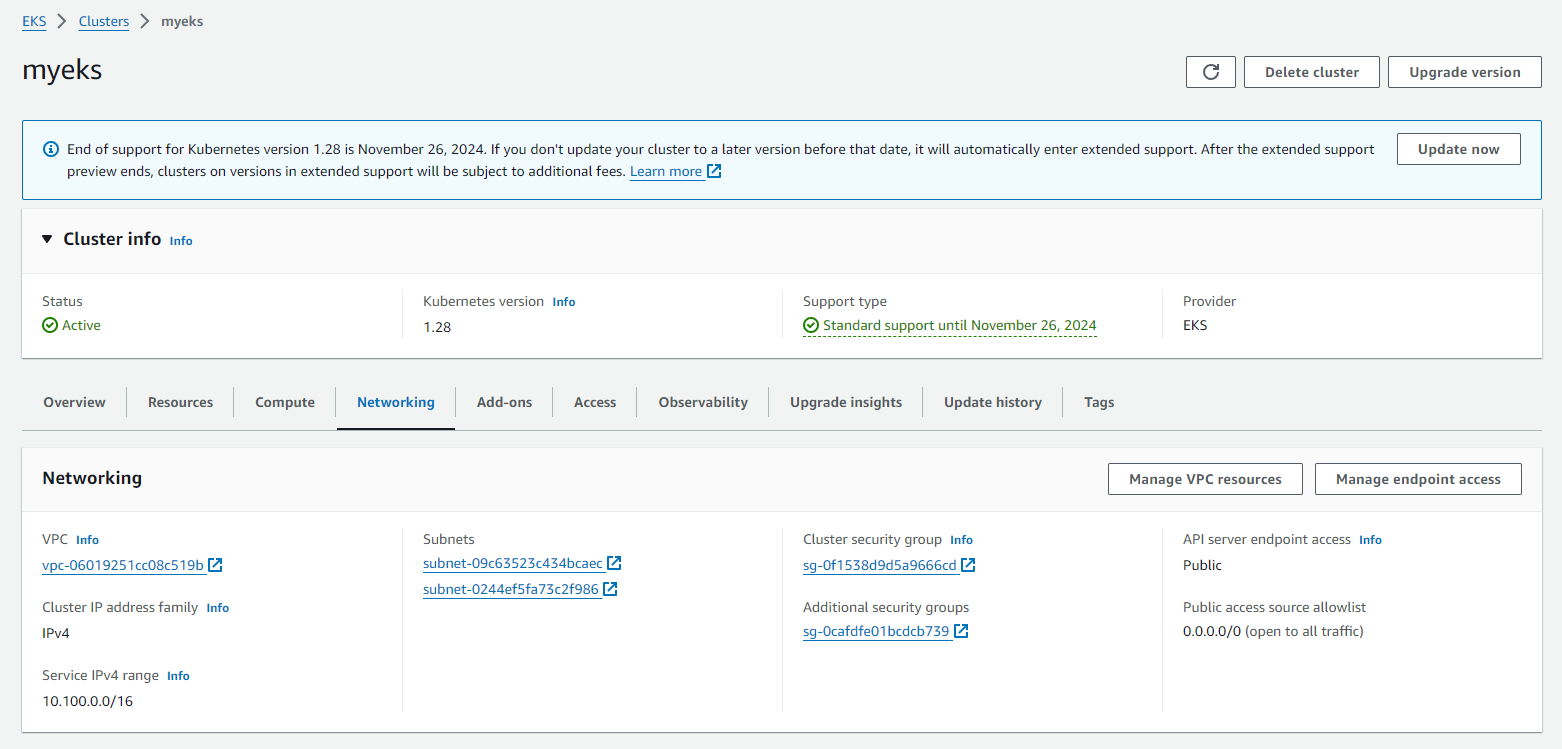 콘솔에서 확인해 보더라도 API 서버 엔드포인트 액세스가 "Public"으로 나와있는 상황이다.
