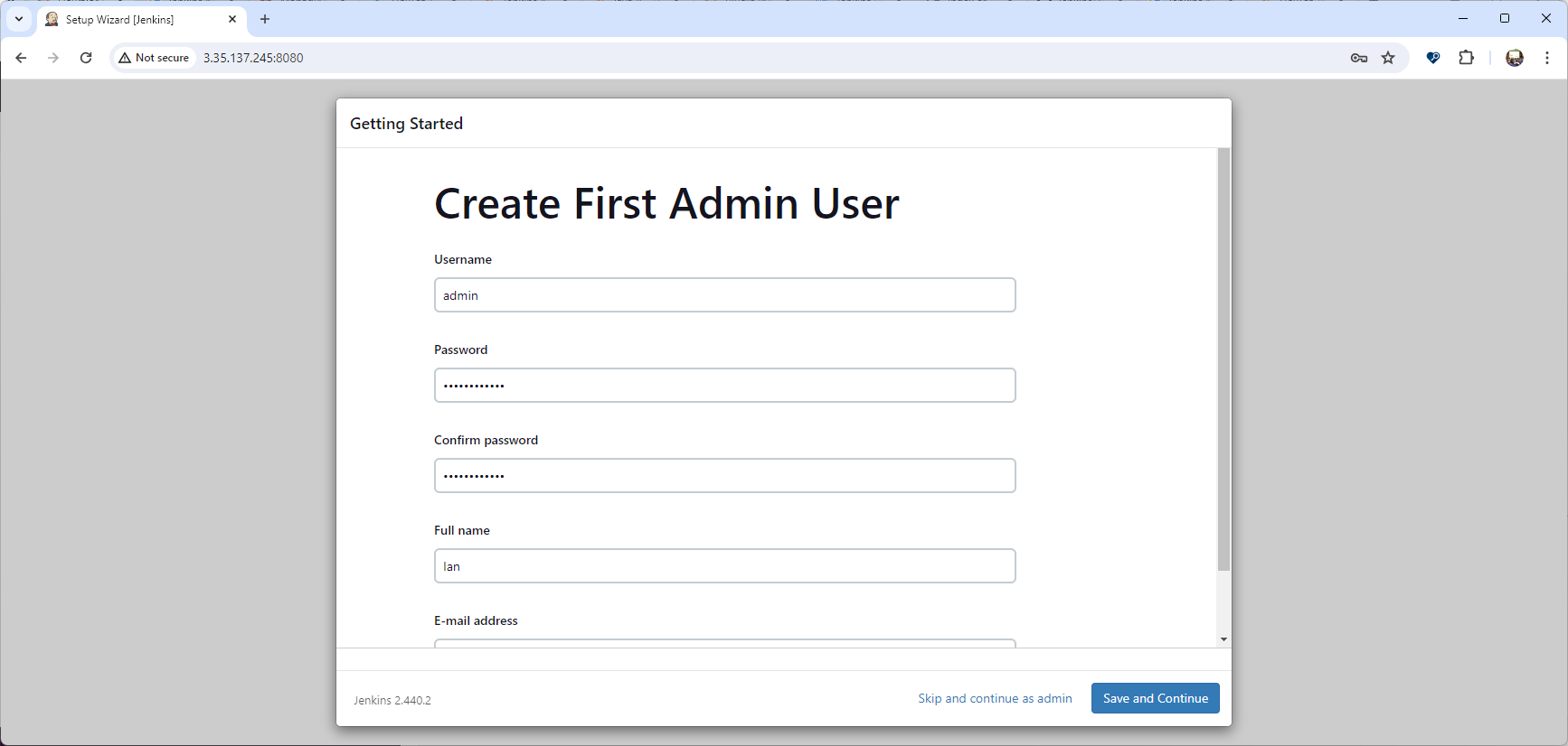 작업용 EC2에 접속하였다면 IAM 사용자 자격 구성이 필요하다. 실습 편의를 위해 administrator 권한을 가진 IAM User의 자격 증명을 입력한다.