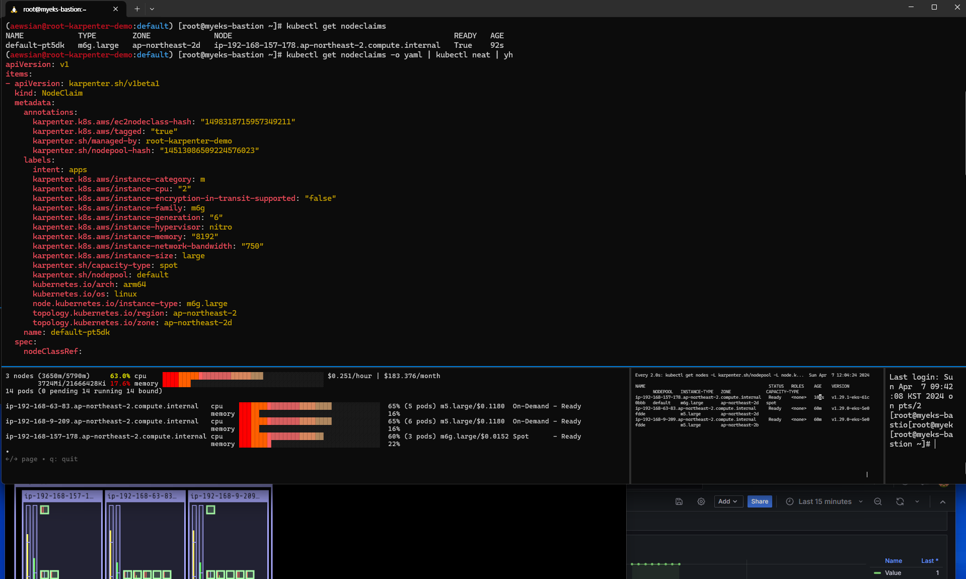총 15-20분 정도 소요되니 잠시 기다려보자. 기다리는 동안에 다른 터미널을 1개 더 열어 아래 명령어를 실행하면 클러스터가 생성되었는지 여부를 확인하는 데 도움이 된다.