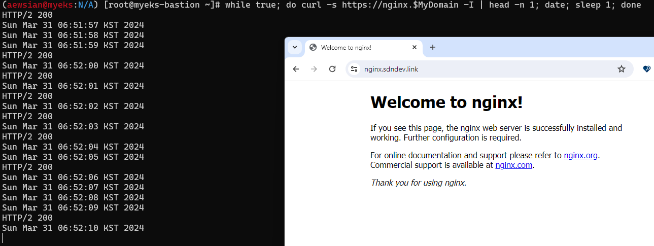 (awesian@myeks:N/A) [root@myeks-host ~]# kubectl cluster-info