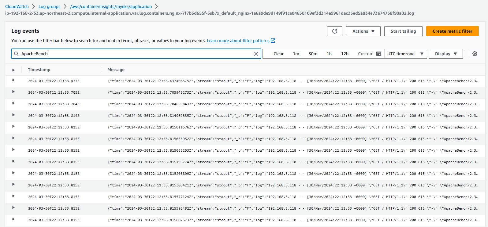 aws logs tail /aws/eks/$CLUSTER_NAME/cluster --filter-pattern <필터 패턴>