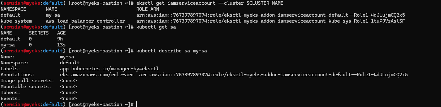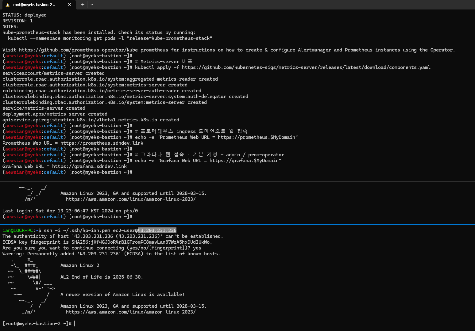 ssh -i ~/.ssh/kp-ian.pem root@$(aws cloudformation describe-stacks --stack-name myeks --query 'Stacks[*].Outputs[0].OutputValue' --output text)