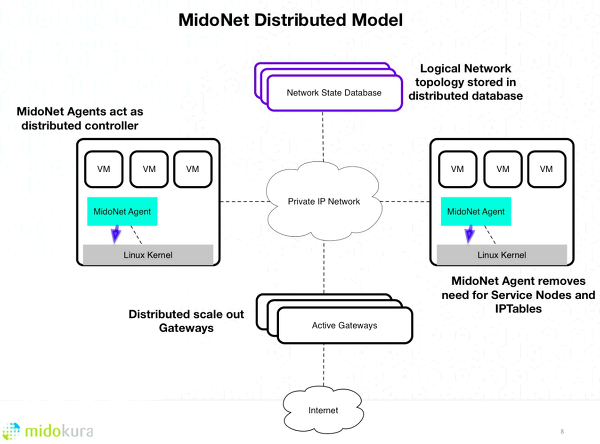 또한, 장애가 발생했을 때의 처리 (예: failover), 확장성 (scalability), 네트워크 효율성 등을 해결하기 위해 Midonet은 분산형의 모델을 선택하였다고 한다.